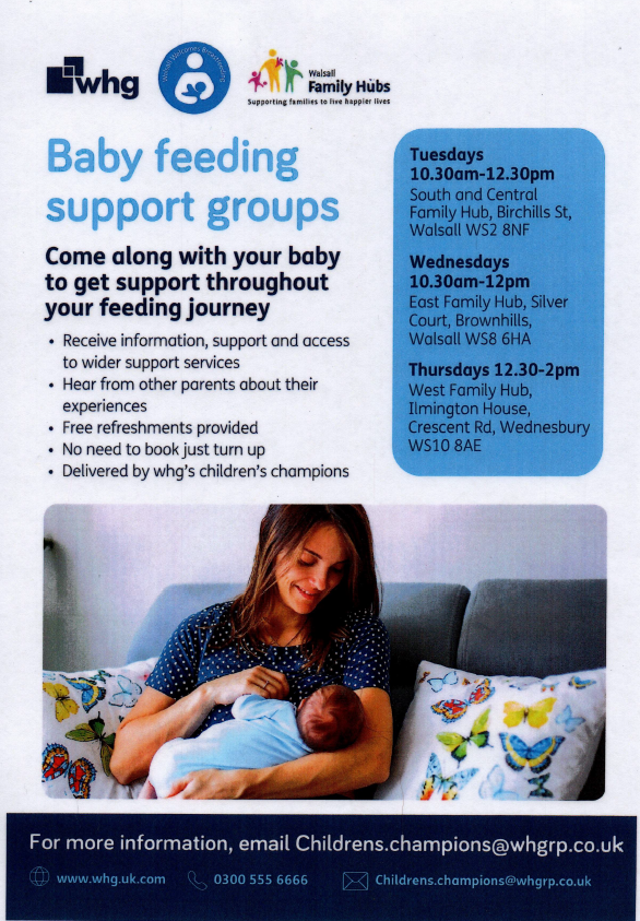 We will be in touch to arrange an antenatal contact when you are between 28 and 32 weeks of pregnancy. This will take place on either an individual basis or you may be invited to one of our Postnatal Preparation Groups. We also run the Little Storks Baby group aimed at families with babies under 1 and the Buggy Walk group at Walsall Arboretum.